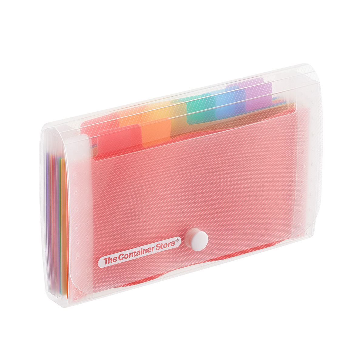 Use our 13-Pocket Coupon File to sort and organize coupons for groceries, restaurants or services. It can also serve as a portable recipe file. Made from durable, clear polypropylene, it features 12 multi-color tabbed dividers and adhesive labels for identifying the contents.